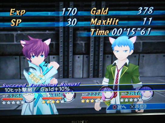 はたから見るとものすごく低レベルな戦闘やってますが、自分でボタン押したらキャラクターがカッコイイ技使ってくれるのを見るのはうれしいですね。(今更ですが)